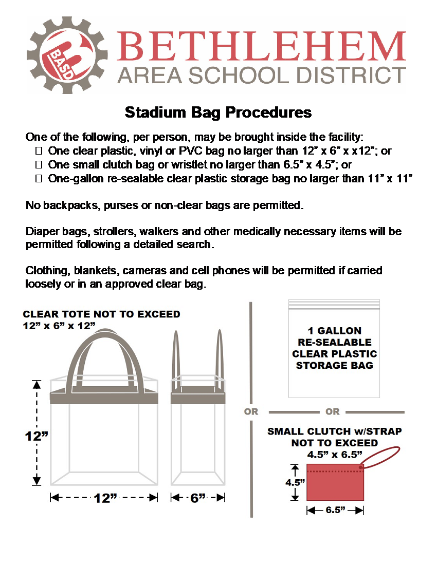 All fans must adhere to BASD Stadium Fan Conduct Policies which are posted upon entrance. In addition, The BASD Board of Directors have enacted prohibition on most bags entering BASD Stadium. The Policy is below for your reference.