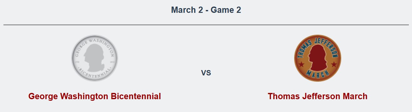 Matchups will be posted the day before the so you can listen to the competing marches and make your selection. Selections must be submited by midnight on the day of the matchup. The first matchup will be Monday, March 2. I will post the next matchup each evening.