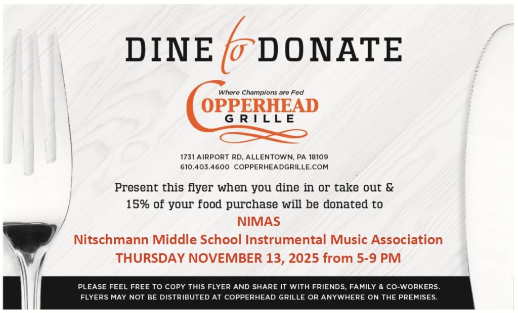 The Nitschmann Middle School music department is selling Matey’s American Pizza Co. Gourmet Frozen Pizzas to raise funds for the instrumental music programs. We are proud to sell Matey’s pizzas because of their quality and reputation. Matey’s pizza comes with a 3 month shelf life in your freezer, so please stock up! Thank you for supporting our organization!