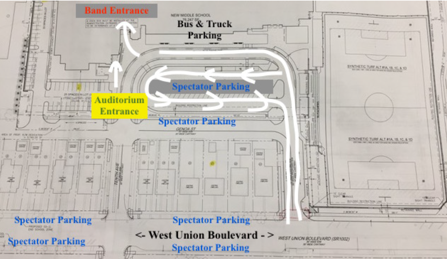 Parking is available in the main lot. You can access the lot my turning into the driveway off W. Union Boulevard onto 9th Avenue by the stadium.